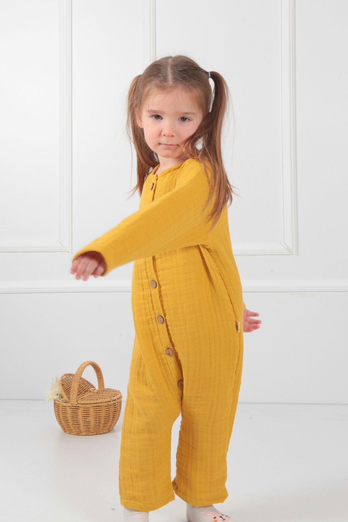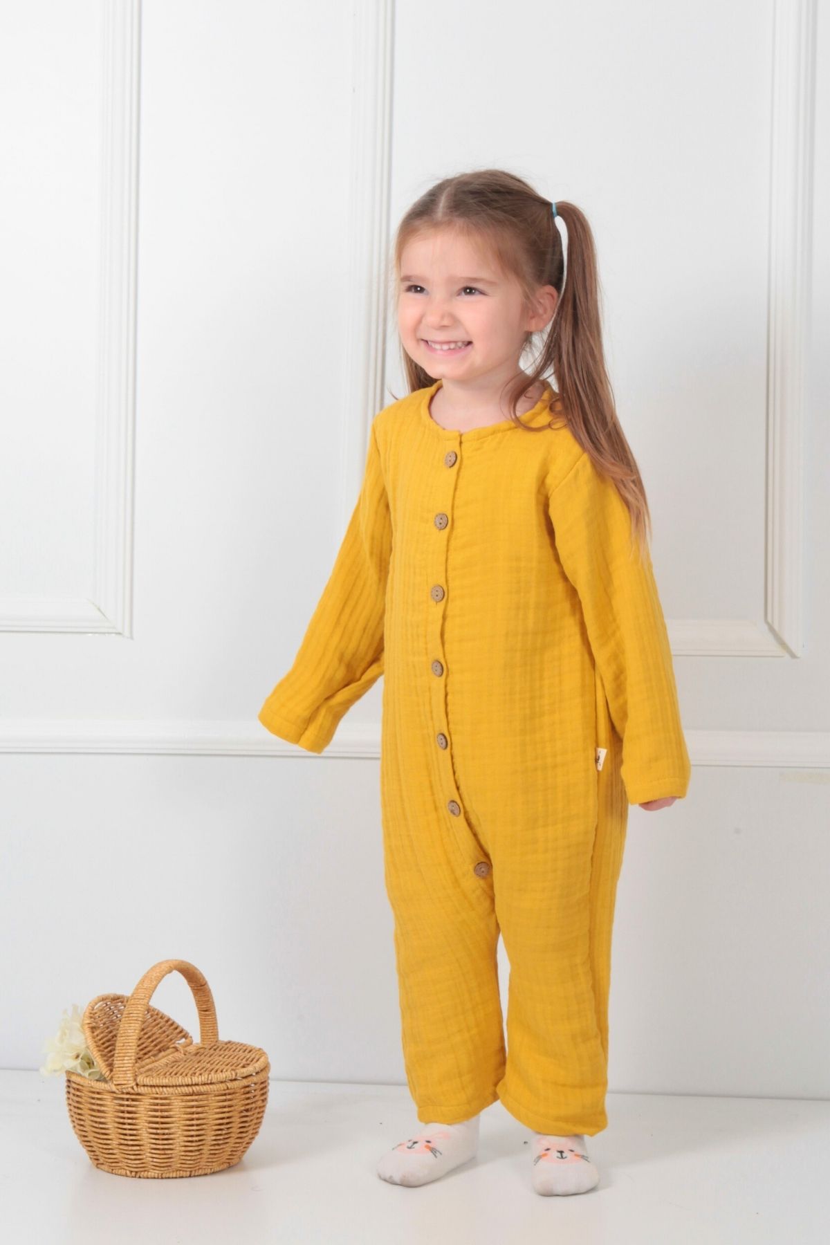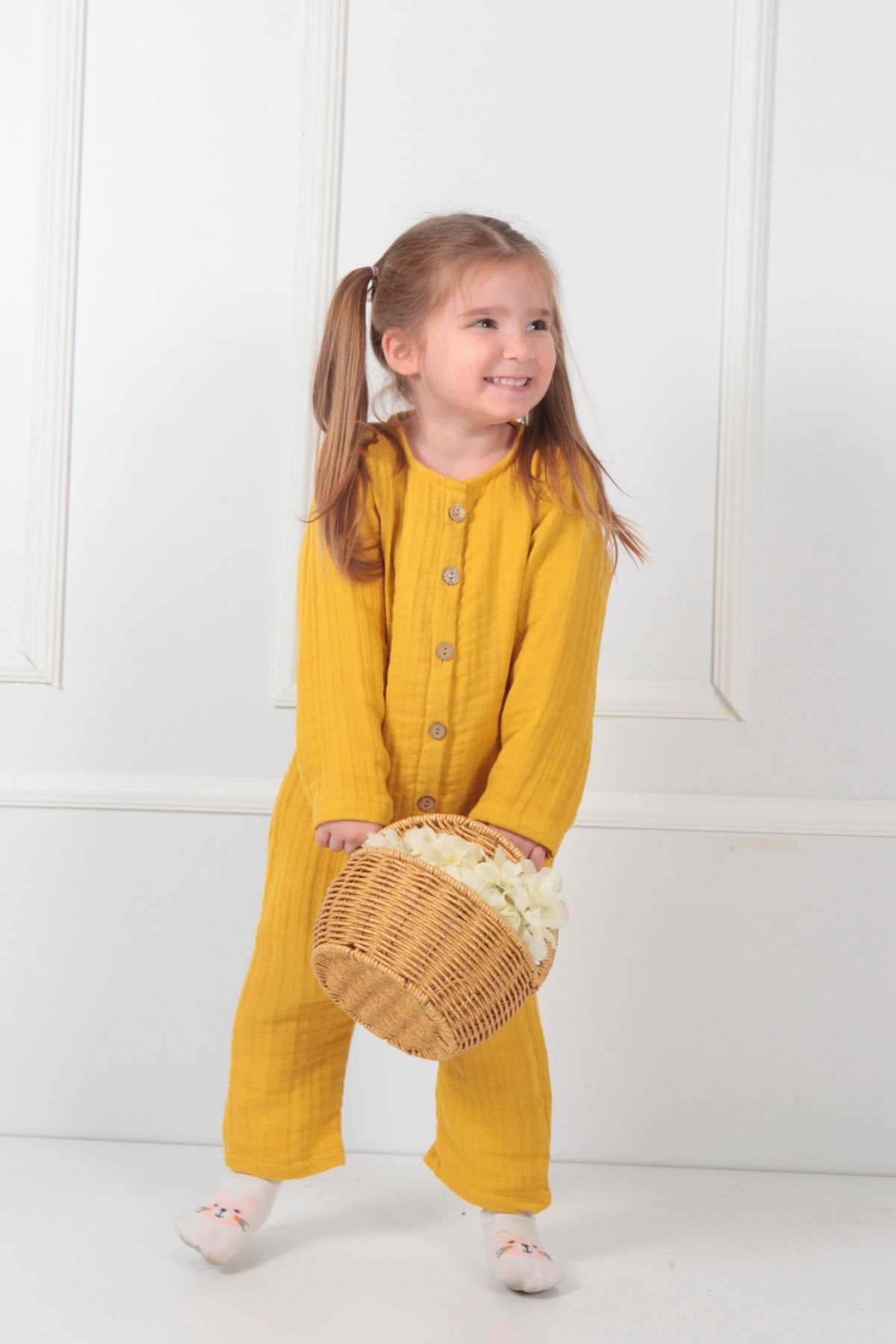 0–4 yaş bebekler için tasarlanan bu rahat ve doğal dokulu muslin tulum, gün boyu konfor sağlayan yumuşak kumaş yapısıyla öne çıkar. Hafif, nefes alan ve hassas ciltlere uyumlu kumaşı sayesinde dört mevsim kullanıma uygundur.