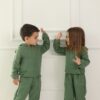 Çocuklarınızın rahatlığı ve şıklığı bir arada! Yumuşak ve nefes alabilen %100 doğal müslin kumaş ile üretilen bu takım, küçüklerin gün boyu konforlu hissetmesini sağlar. Kapüşon detayı, stil sahibi bir görünüm sunarken, kanguru cep hem işlevsel hem de eğlenceli bir detay olarak öne çıkıyor. Lastikli bel ve paça yapısı sayesinde kolayca giyilip çıkarılabilir, aynı zamanda hareket özgürlüğü sağlar.